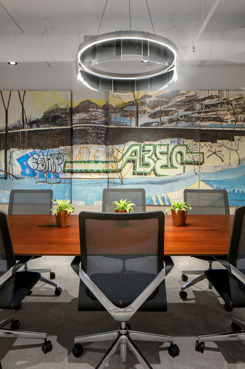 These offices needed to be multi-purpose with an industrial vibe, which was reflective of International Market Square. Designed for individual workspaces, collaborative spaces, conference rooms, and an upfront lobby space worthy of entertaining, we included many acoustic properties for sound absorption, a cool color pallet that was both sophisticated and restful and adorned the area with beautiful art that accentuated the design.
