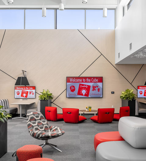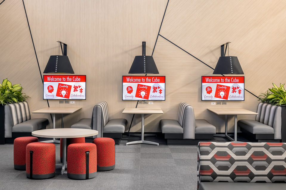 It was an honor to continue our work with Benilde St. Margaret school, helping to bring to life their center for collaborative and innovative learning called The Cube. The Cube is a space that students and instructors can gather to take advantage of communal workspaces, the latest in video conferencing, learning programs, 3D printers, and an IT support center.
