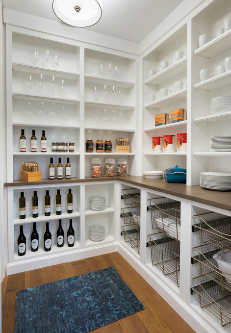 The InUnison Design team flooded the kitchen of this ASID showcase home with light and fresh colors. Pops of blue and green can be found in the painted antique chandelier that contrasts with the newer materials of the space. The 14-foot island creates ample room for cooking prep, while also providing a clear separation between the working aspect of the kitchen and the entertaining area for guests. White cabinets act as the backdrop for the room, which is enhanced by a mix of materials and finishes including warm wood floors, a custom metal range hood, and polished nickel accents.