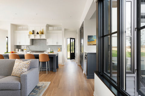 The focus of the design was to quiet the materials, colors, and let the views speak for themselves. But for this active family, casual living that is warm, inviting and prime for gathering meant that the design had to account for hard use and durability. From the black exteriors to the spare sense of visual distraction, this home strikes a harmonious tone throughout.